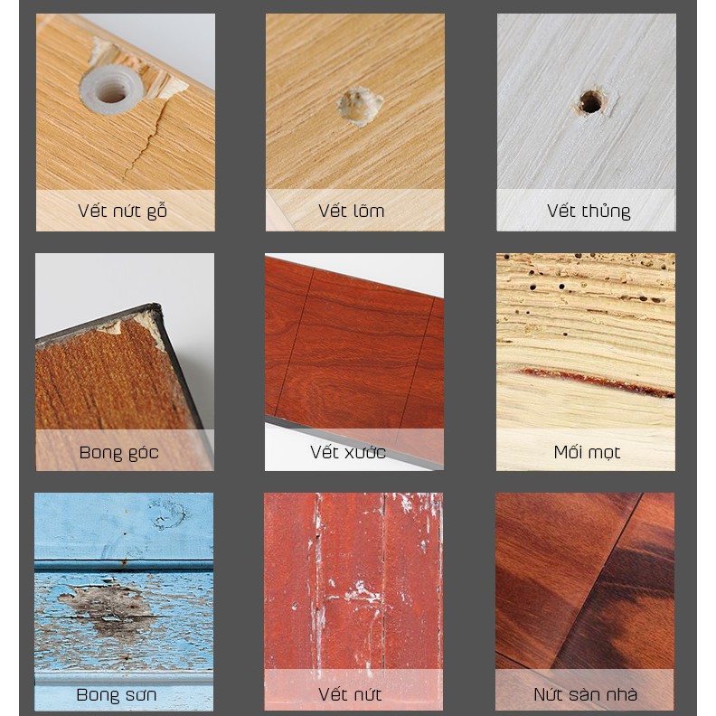 - Dán sửa chữa đồ nội thất bằng gỗ, che vết trầy xước trên đồ nội thất, tủ, sàn nhà và đồ nội thất.