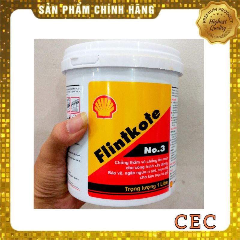Sơn chống thấm Flintkote 1 lít, Chống thấm Bể nước Hồ cá Koi Màu Đen, Chính hãng Shell Thái Lan FN31 [CEC Store]