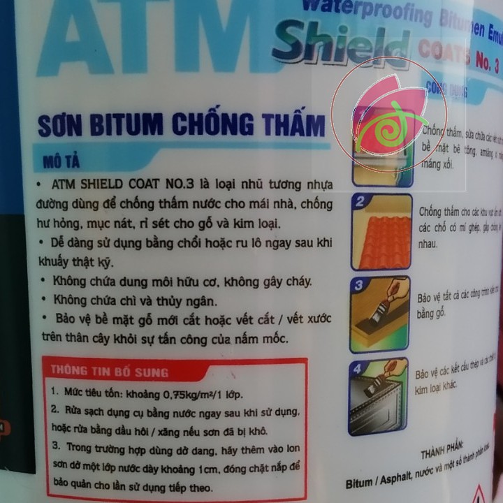 SƠN BITUM CHỐNG THẤM ATM Shield COATS No. 3ATM Shield Coat No.3 là loại nhũ tương nhựa đường dùng để chống thấm nước cho mái nhà, chống hư hỏng, mục nát, rỉ sét cho gỗ và kim loại.