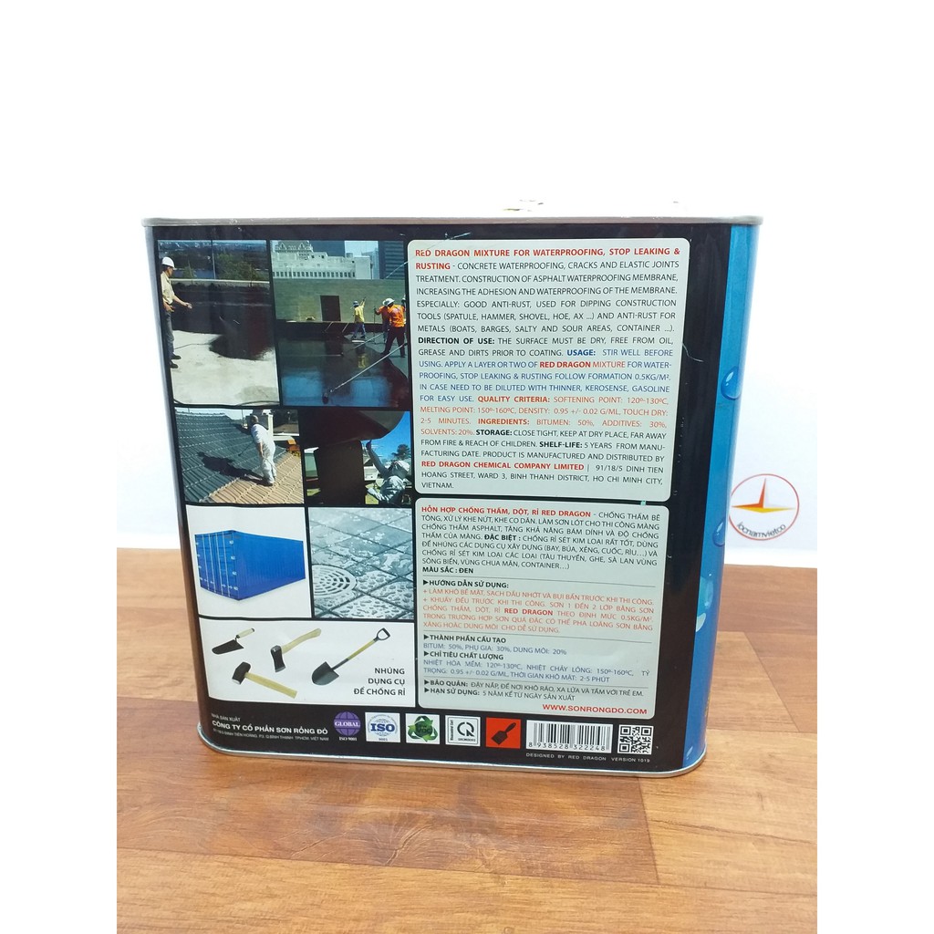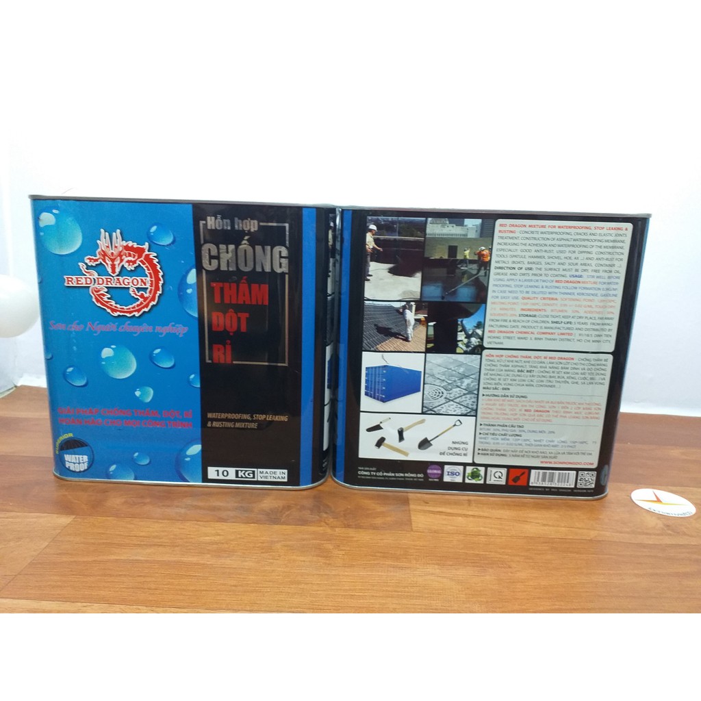 Sơn chống thấm rồng đỏ 10 KgThành phần: Cao su lưu hóa, PE, PP, PVC và phụ gia, nhựa đường, vật liệu xây dựng