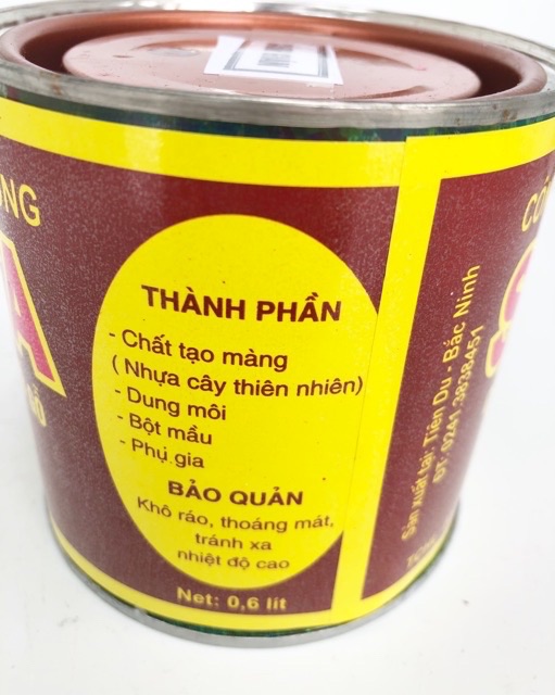 Sơn Ta màu cánh gián, chuyên dùng cho đồ gỗ. Thành phần chủ yếu là : nhựa cây, dung môi, phụ gia. Thời gian khô dưới.........Khối lượng: 800g
