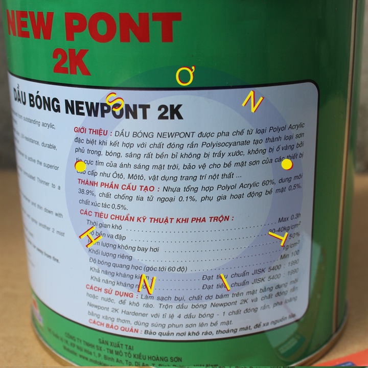· Tỷ lệ pha trộn: 4 phần Newpont 2K ACRYLIC + 1 phần đóng rắn Newpont 2K HARDENER .