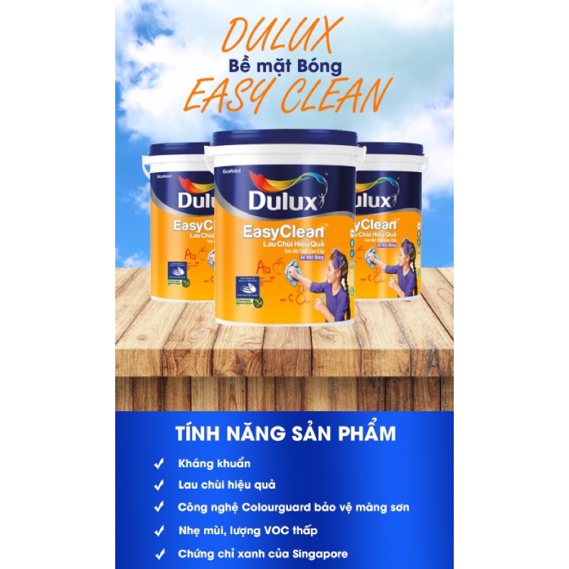 Sơn nội thất Dulux lau chùi hiệu quả là dòng sản phẩm cao cấp của công ty Akzo Nobel ( Tập đoàn chất phủ lớn thứ 3 thế giới) đến từ Hà Lan với tiêu chuẩn Châu Âu.- Các tính năng vượt trội của DUlux Easy Clean: