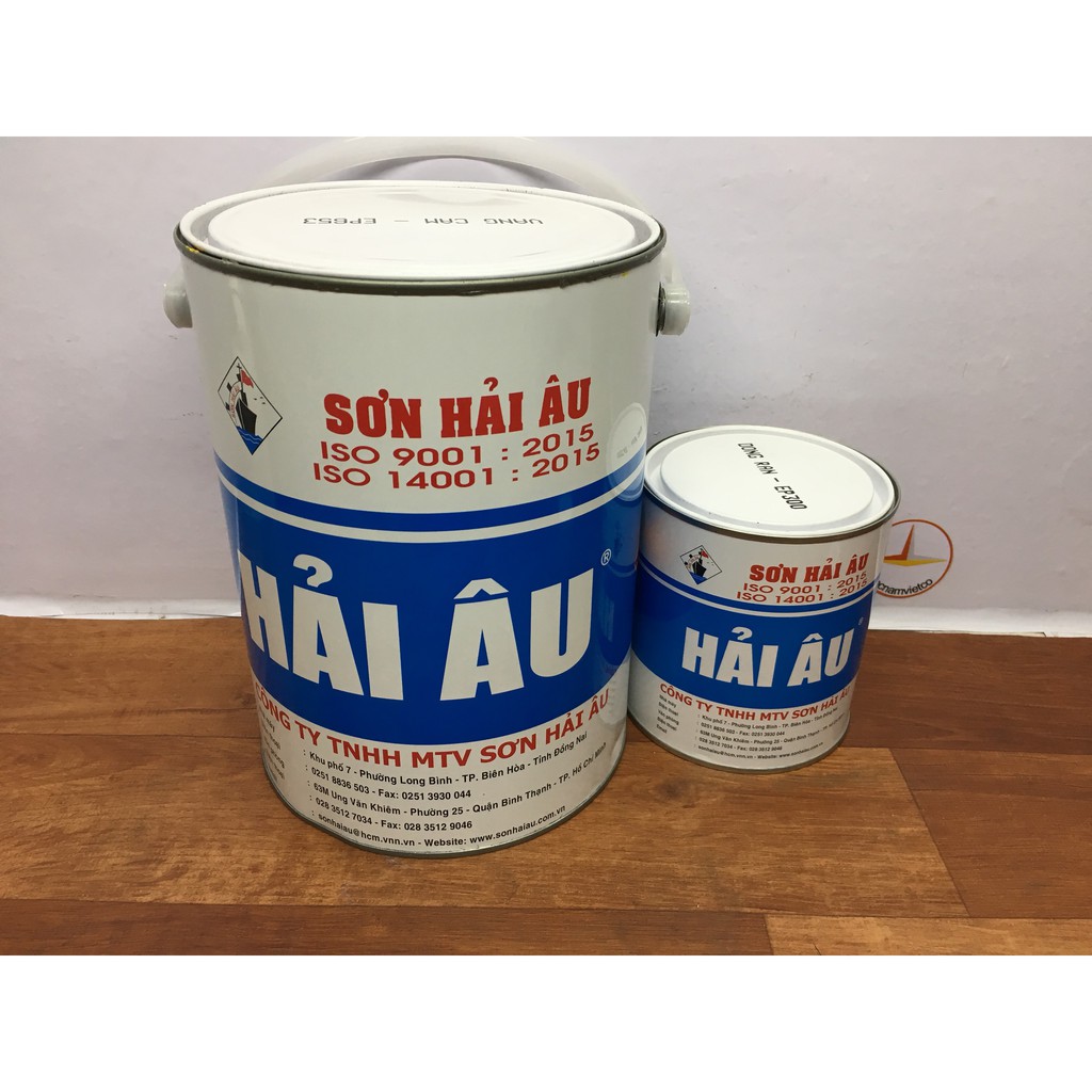 Sơn Epoxy Hải Âu màu vàng cam EP 653 5L/bộSơn Epoxy Hải Âu là sơn hai thành phần: Phần A: Nhựa epoxy, bột màu, dung môi hữu cơ, các phụ gia đặc biệt. Phần B: Nhựa Đóng rắn polyamide, Amine và các dẫn xuất.