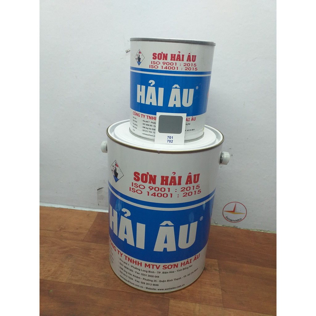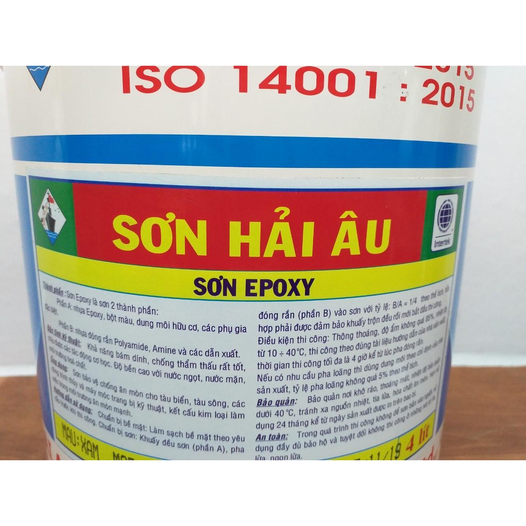 Sơn Epoxy Hải Âu là sơn hai thành phần: Phần A: Nhựa epoxy, bột màu, dung môi hữu cơ, các phụ gia đặc biệt. Phần B: Nhựa Đóng rắn polyamide, Amine và các dẫn xuất.Đóng Gói: 1L/bộ(A: 0.8L; B:0.2L Sơn/đóng rắn)