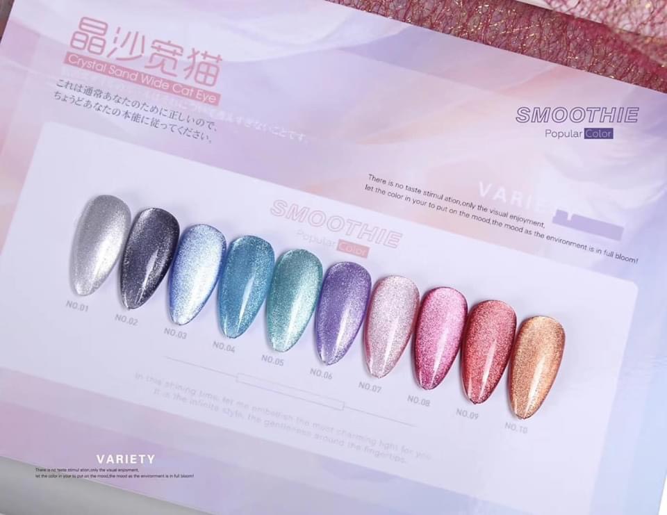 - Sơn gel mắt mèo kim cương có thể mix với màu nền nào cũng được( nên mix nền màu thạch để phát huy hiệu ứng tối đa)