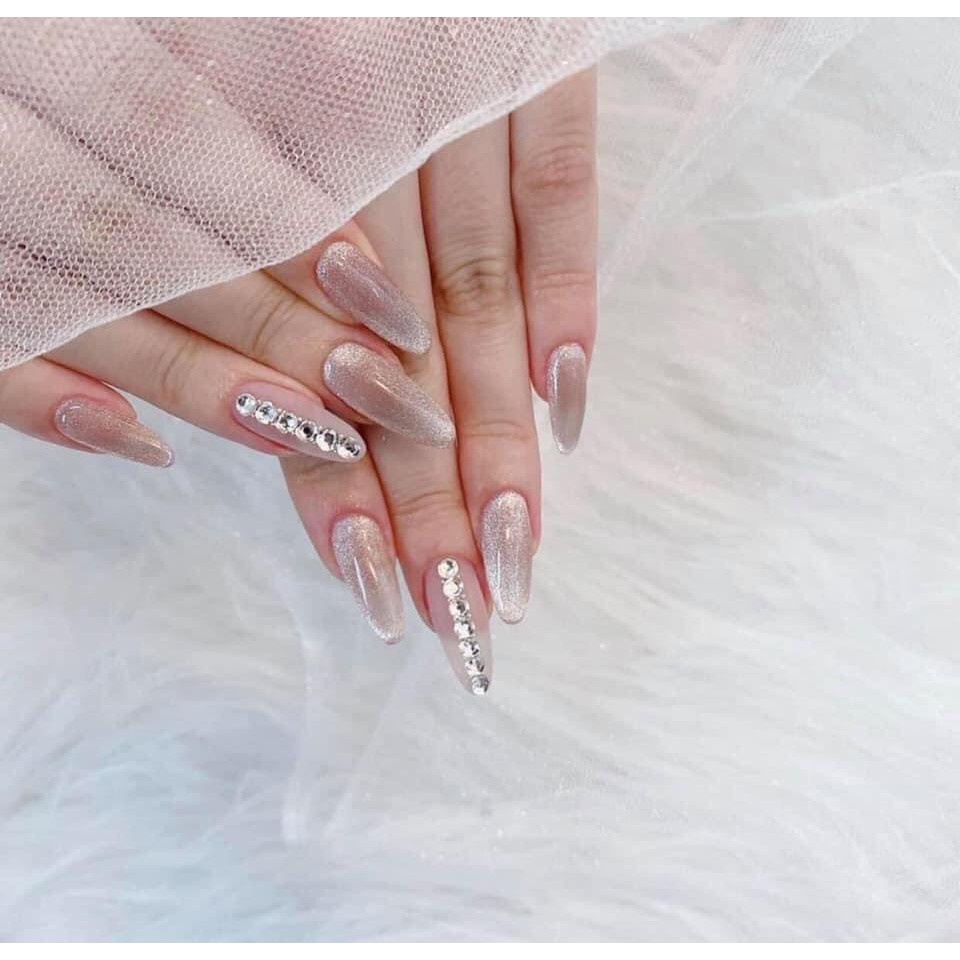 - Sơn gel mắt mèo kim cương: Chỉ 1 chai tinh thể mắt mèo - đã có thể biến hoá đa dạng lắm luôn, thợ nail thoả sức sáng tạo những mẫu móng tuyệt đẹp