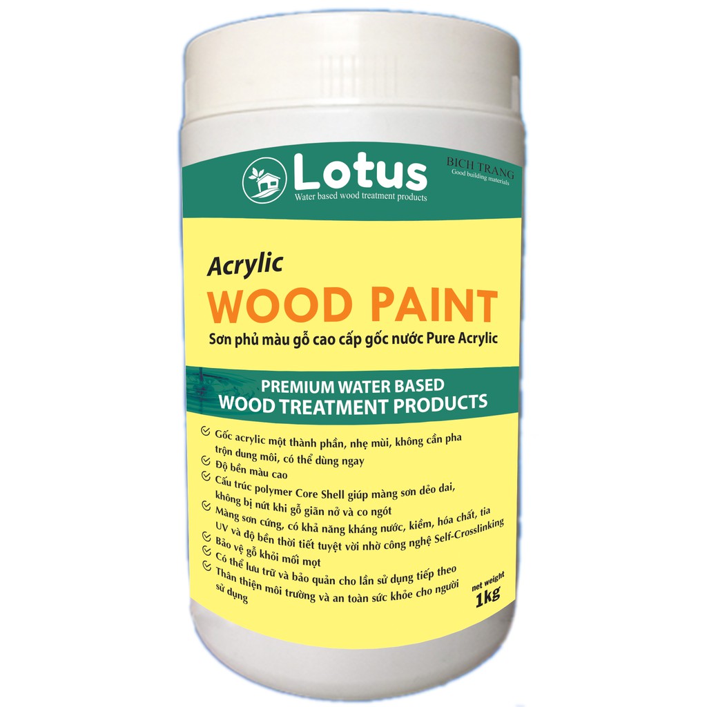 Lotus wood paint là sơn phủ màu gốc nước một thành phần, được sử dụng để trang trí và bảo vệ bề mặt gỗ cho các sản phẩm nội và ngoại thất. Sản phẩm được nghiên cứu và sản xuất với công nghệ mới nhất để đảm bảo sơn có độ bền tốt trong điều kiện khí hậu vùng nhiệt đới. Nhờ cấu trúc polymer acrylic dạng Core Shell, nên màng sơn dẻo dai giúp không bị nứt khi gỗ co ngót hay giãn nở do độ ẩm và nhiệt độ. Cùng với công nghệ Self-crosslinking-liên kết ngang trong kết cấu polymer, màng sơn có độ cứng cao, khả năng kháng nước, kiềm, hóa chất, rêu, nấm mốc và độ bền thời tiết,độ bền màu tuyệt vời. Lotus wood paint là sơn gốc nước, một thành phần , trong công thức tỉ lệ VOCs thấp, không chứa chì và thủy ngân, nên thi công rất tiện lợi, dễ dàng, an toàn với sức khỏe của người sử dụng và thân thiện với môi trường.==> Chi tiết tham khảo tại: https://sonlotus.com/
