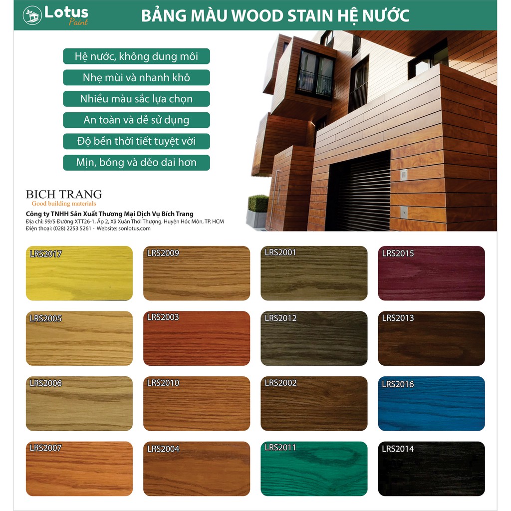 Nhà cửa & Đời sống > Dụng cụ & Thiết bị tiện ích > Sơn & chất chống thấm tường || Sơn gỗ - Màu stain gỗ, không dung môi, không phai màu, an toàn, hệ nước - Lotus wood stainCòn hàng