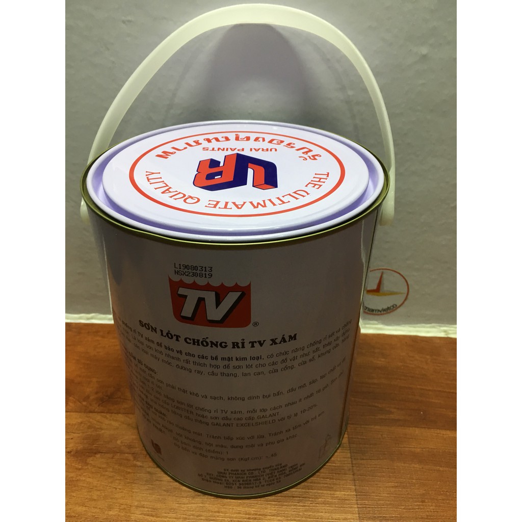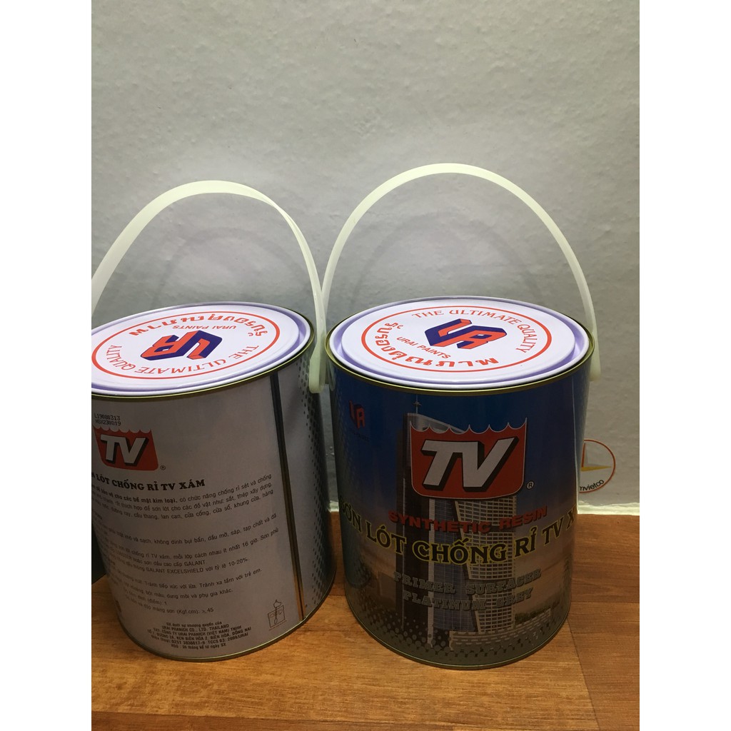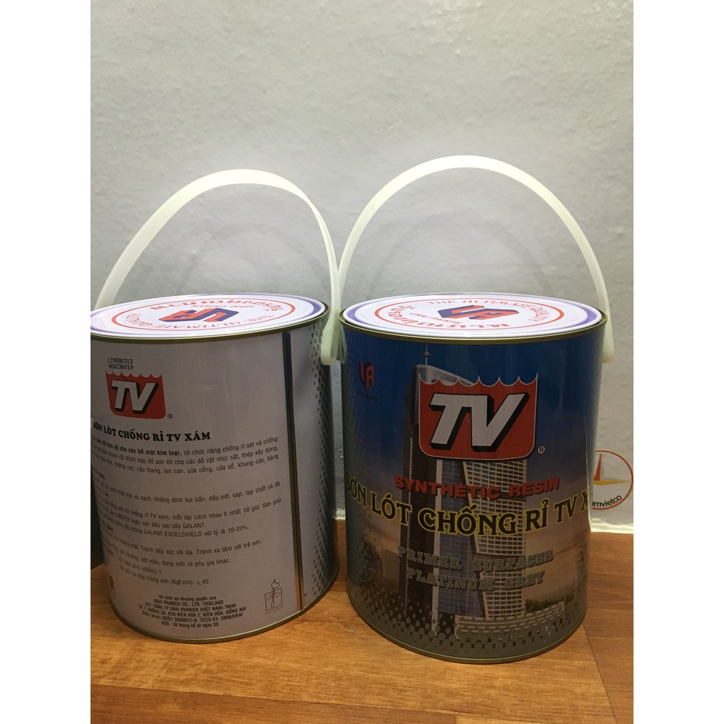 Sơn Lót chống rỉ TV màu xám dùng để bảo vệ cho các bề mặt kim loại có chức năng chống rỉ sét và chố sự mài mòn. là sơn nhanh khô, rất thích hợp để sơn lót cho các đồ vật như: sắt, thép xây dựng, lưới kim loại máy móc, đường ray, cầu thang, lan can, cửa cổng, cửa sổ, khung cửa hàng rào,...Đóng gói: 0.375l; 0,875l, 3l, 17,5L