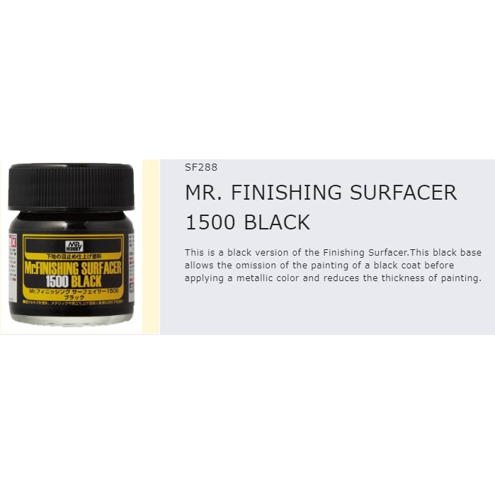 Sơn lót bề mặt dùng cho sơn mô hình.- Sơn lót bề mặt: Surfacer Black 1500, Surfacer Gray 1500