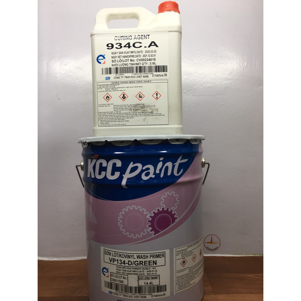 Sơn lót KCC KOVINYL WASH PRIME VP134-DGREEN (Chịu AXIT 3-4%) là sơn lót hai thành phần, khắc axit có chứa axit photphoric và các sắc tố ngăn ngừa rỉ sét. Là sơn lót tiền xử lý để sử dụng cho các kim loại màu như nhôm và hợp kim nhẹ cũng như thép mạ kẽm.Màu sắc: DARK GREEN (XANH ĐẬM)