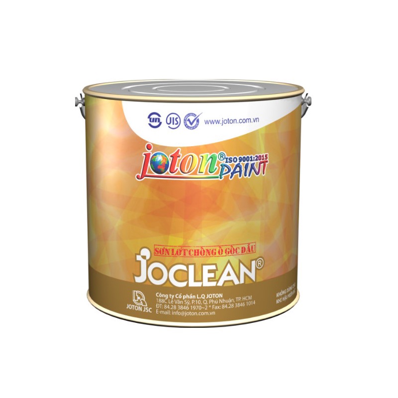 Sơn Lót Chống Ố Gốc Dầu Joton - JOCLEAN là sơn lót cho sơn chống thấm gốc dầu, kéo dài tuổi thọ và giữ bền màu cho lớp sơn phủ, thích hợp cho tường trong và ngoài nhà, chống ố vàng cho bề mặt sơn phủ do quá trình kiềm hóa của bê tông. Độ phủ lý thuyết: 5.5-7m2/kg/lớp, tùy thuộc điều kiện bề mặtCần xử lý bề mặt tường trước khi phủ chống ố: làm sạch lớp sơn, vôi cũ; bề mặt phải thật khô cứng trước khi sơn.