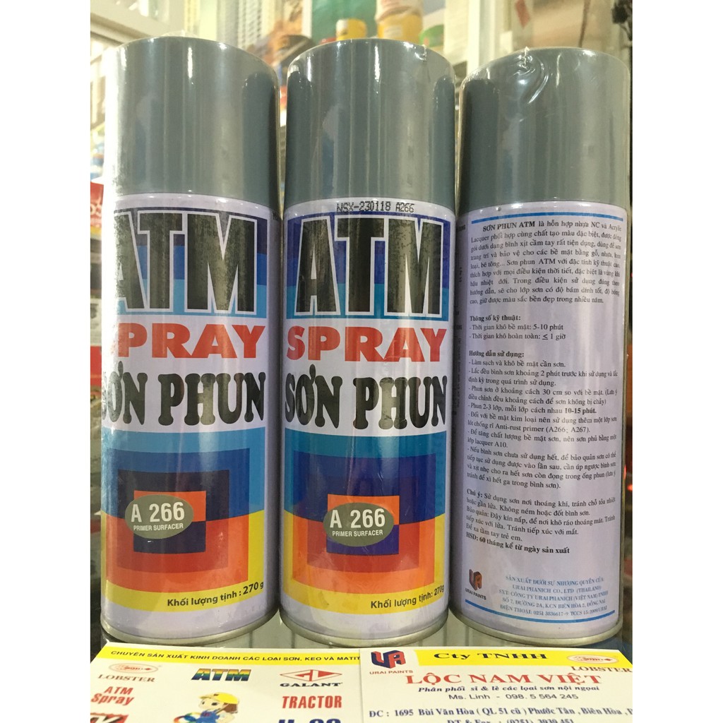 Sơn lót chống rỉ xám màu ATM A266SƠN XỊT ATM SPRAY Được Đặc chế từ hỗn hợp nhựa N/C và ACRYLIC, được đóng gói dưới dạng bình xịt cầm tay rất tiện dụng, dùng sơn để trang trí cho các bề mặt bằng gỗ và kim loại như: đồ gia dụng, bàn, ghế, đồ chơi trẻ em, xe đạp, xe máy,... Với đặc tính kỹ thuật cao, thích hợp với mọi điều kiện thời tiết, đặc biệt là vùng khí hậu nhiệt đới. Trong điều kiện sử dụng đúng theo hướng dẫn, sẽ cho lớp sơn có độ bám dính tốt, độ bóng cao, giữ được màu sắc bền đẹp trong nhiều năm. Đây là loại sơn mau khô, chất lượng tuyệt hảo với màu sắc tươi, bền và bóng đẹp đến không ngờ!