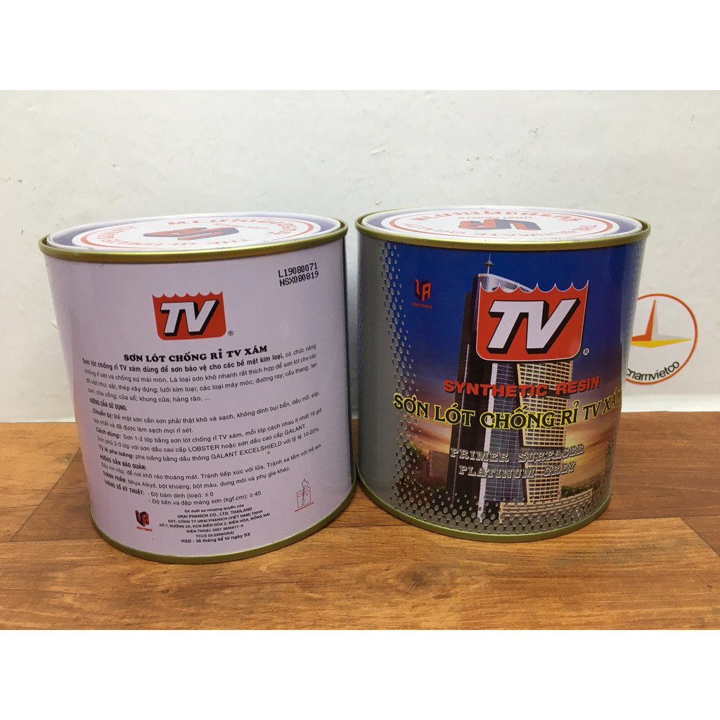 Sơn Lót chống rỉ TV màu xám dùng để bảo vệ cho các bề mặt kim loại có chức năng chống rỉ sét và chố sự mài mòn. là sơn nhanh khô, rất thích hợp để sơn lót cho các đồ vật như: sắt, thép xây dựng, lưới kim loại máy móc, đường ray, cầu thang, lan can, cửa cổng, cửa sổ, khung cửa hàng rào,...Đóng gói: 0.375l; 0,875l, 3l, 17,5L