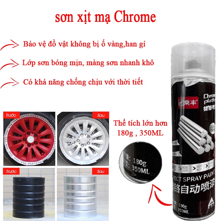 Sơn mạ crom tráng gương mạ kẽm tamiya cao cấp - chống rỉ sét , bào mòn thời tiết thể tích lớn 350ml- Sơn mạ chrome hiệu ứng màu inox cao cấp, tinh tế và nổi bật. Lớp sơn bóng mịn, màng sơn khô nhanh, độ bóng cao bám trên mọi bề mặt thích hợp đồ nội thất, đồ gia dụng, xe oto, xe máy,… Sản phẩm sau khi sơn nổi bật, độc đáo và thu hút hơn