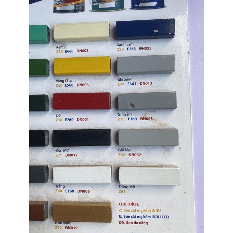 - Sơn sắt mạ kẽm iNDU ECO được sản xuất trên dây chuyền công nghệ Châu Âu là sự tổng hợp của nhựa Acrylic cao cấp và chất tạo màu giúp bề mặt sơn phủ đẹp, màu sắc đa dạng.