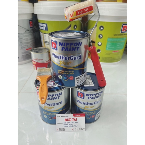 Sơn Nippon WeatherGard Plus Trắng +( 1kg + cọ+ lăng = siêu rẻ