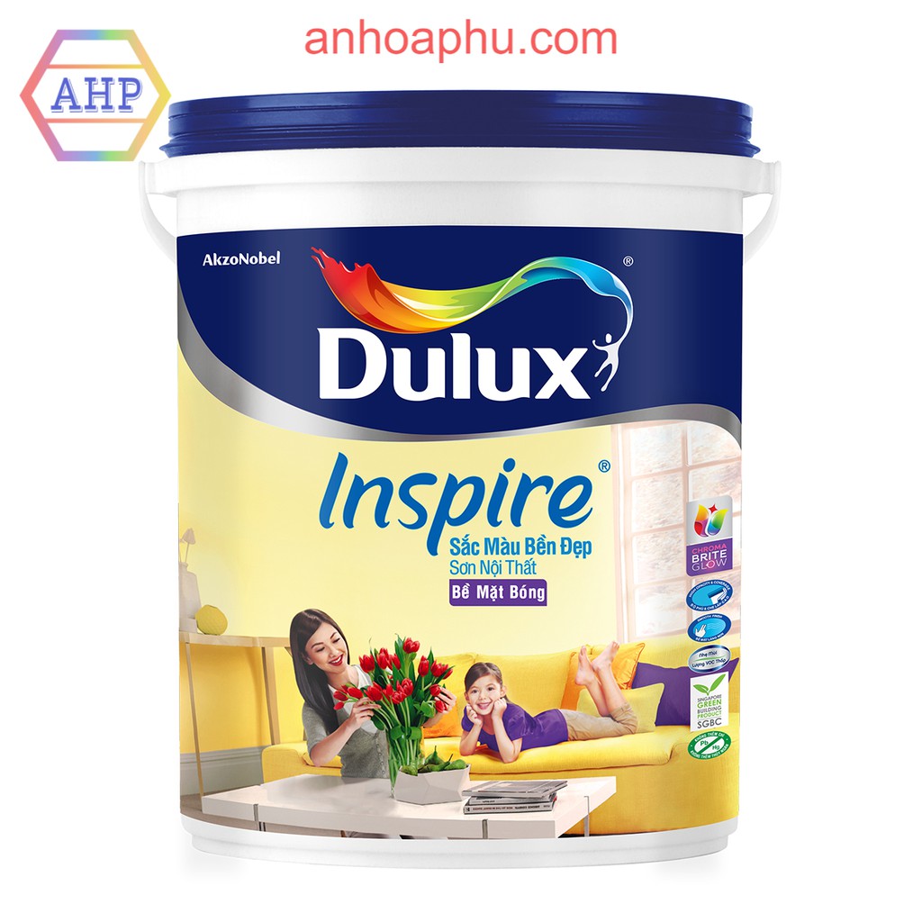 Giới thiệu sản phẩmSơn nội thất Dulux Inspire tô điểm và gìn giữ vẻ đẹp cho ngôi nhà bạn. Với công nghệ ChromaBrite cho màu sắc bền và tươi đẹp, tổ ấm của bạn sẽ luôn là không gian đẹp, dễ chịu và thoải mái. Ngoài ra, Dulux Inspire còn có bề mặt láng mịn và độ phủ cao.
