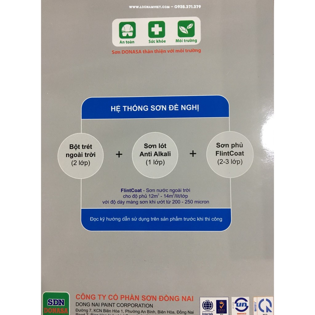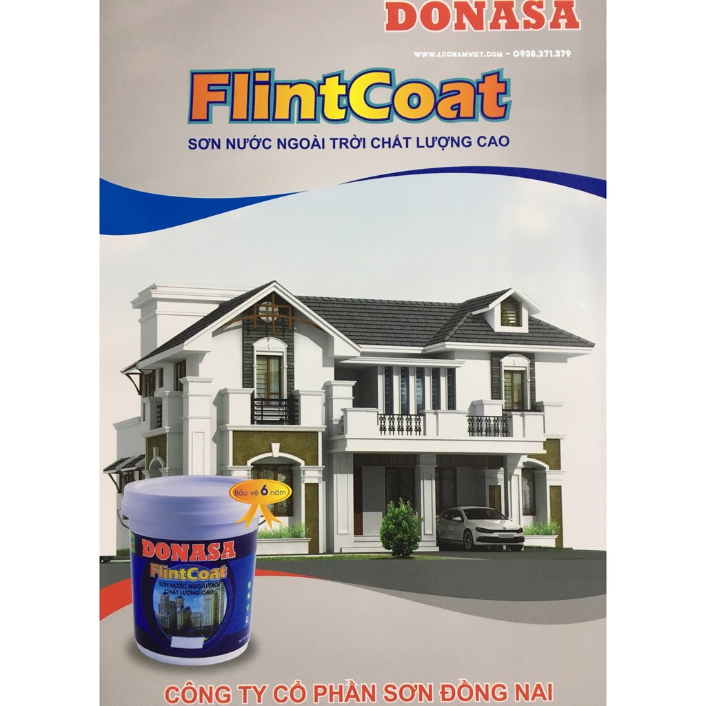 SƠN NƯỚC DONASA FLINTCOAT 18L/THÙNGDONASA FlintCoat là loại sơn nước bán bóng 100% Acrylic cao cấp để phủ tường chủ yếu ngoài trời. Sản phẩm được chế tạo theo công nghệ Mỹ , phục vụ công trình chất lượng cao. Đặc biệt độ phủ, độ bám dính cao. Sơn chịu mọi thời tiết nóng ẩm tại Việt Nam. Sơn chống nấm – rêu mốc, chống bám bụi, chống thấm đặc biệt hiệu quả cao . Màng sơn chịu chùi rửa thoải mái . Sơn giữ màu đẹp, không bị phấn hóa.