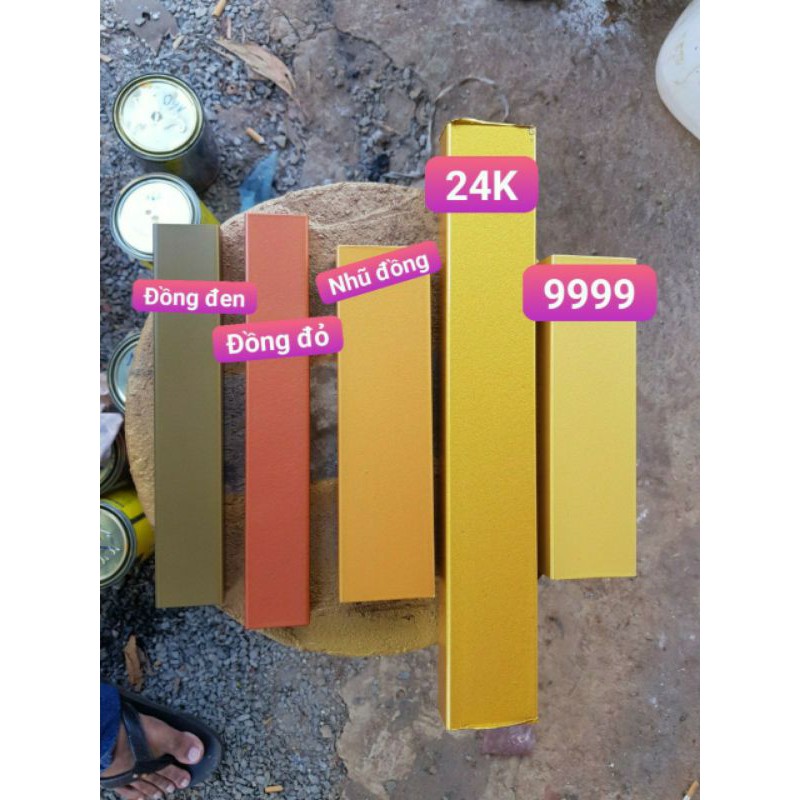 Sơn gốc nước màu nhũ cực đẹp, bám dính chắc, bóng đẹp. nay có thêm 3 màu nhũ: đồng cam, đồng đỏ và đồng xanh rất đẹp.hệ nước tiện lợi và siêu tiết kiệm. sơn được trên nhiều bề mặt đơn giản và dễ dàng.