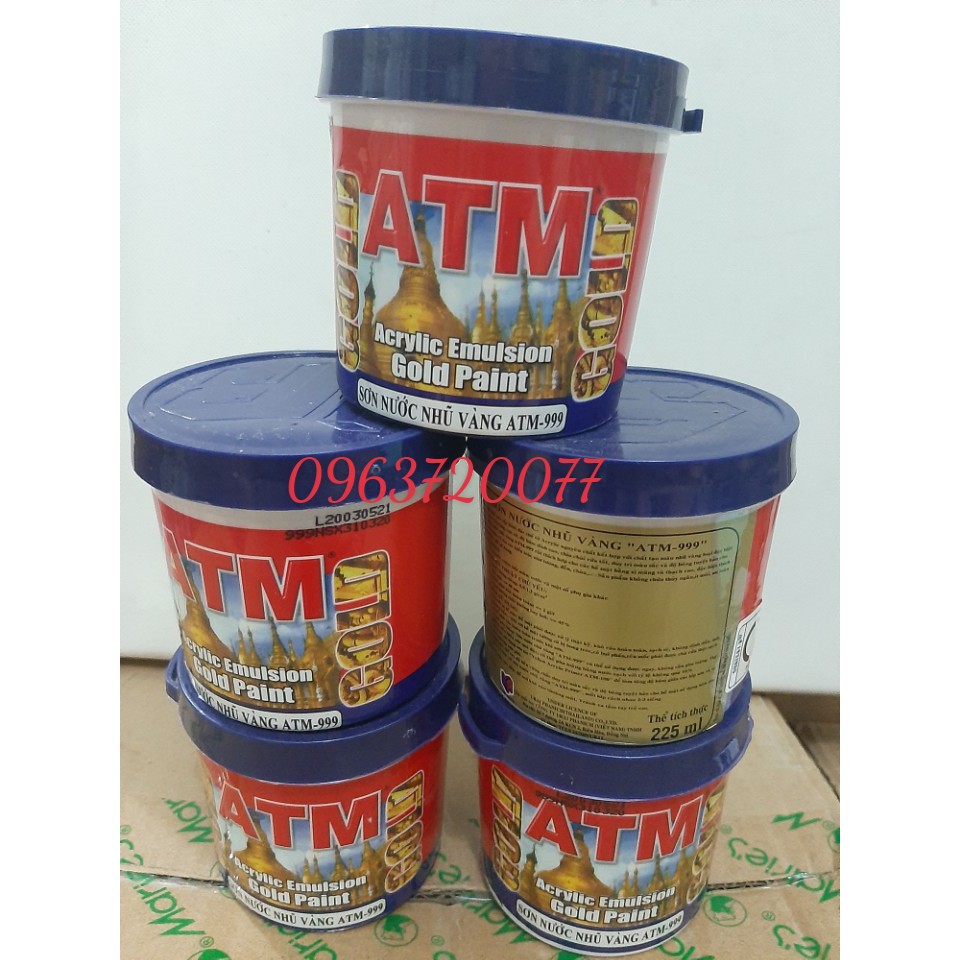 Sơn nước nhũ vàng ATM 999 ( Hộp nhỏ 225ml )🔶Được đặc chế từ nguyên chất Acrylic 100% kết hợp với chất tạo màu nhũ vàng lọai đặc biệt , cho sắc màu sáng óng ánh và rực rỡ.