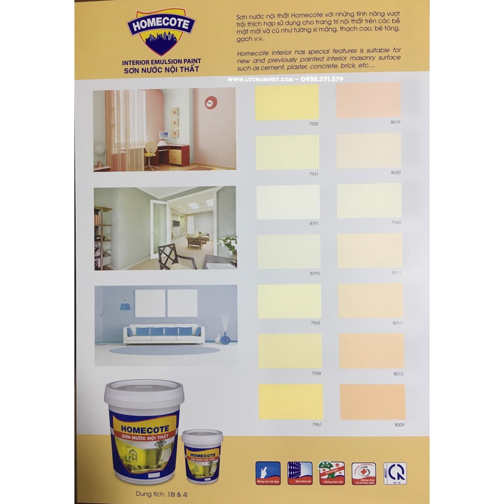 Sơn nước nội thất Toa Homecote 18L (P1) NHIỀU MÀU CHỌN PHÍA TRÊN)MÃ MÀU: Trắng, 7929, 7931, 8791, 8793, 7963, 7938, 7961, 8619, 8620,7940, 8012, 8011, 8010, 8009