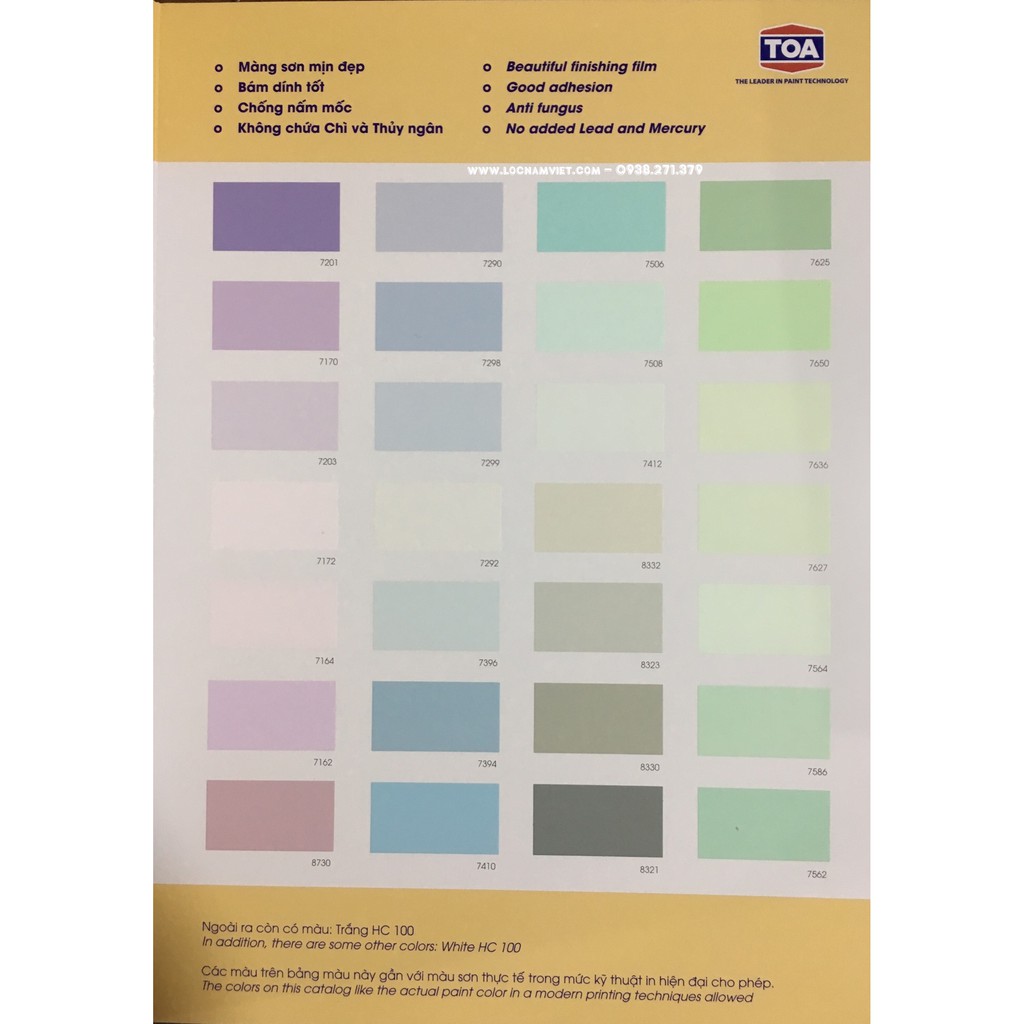CÁC MÀU CÒN LẠI THUỘC Sơn nước nội thất Toa Homecote 18L (P2) & (P3)