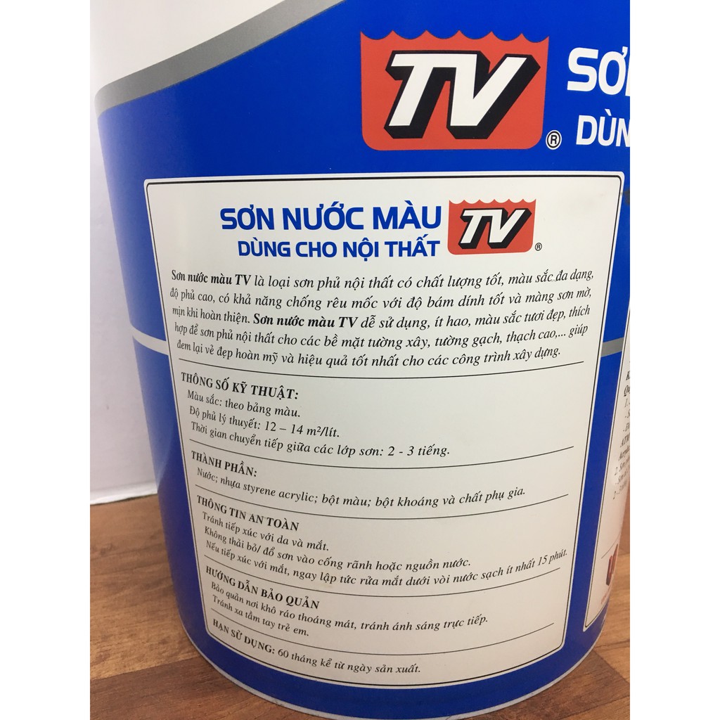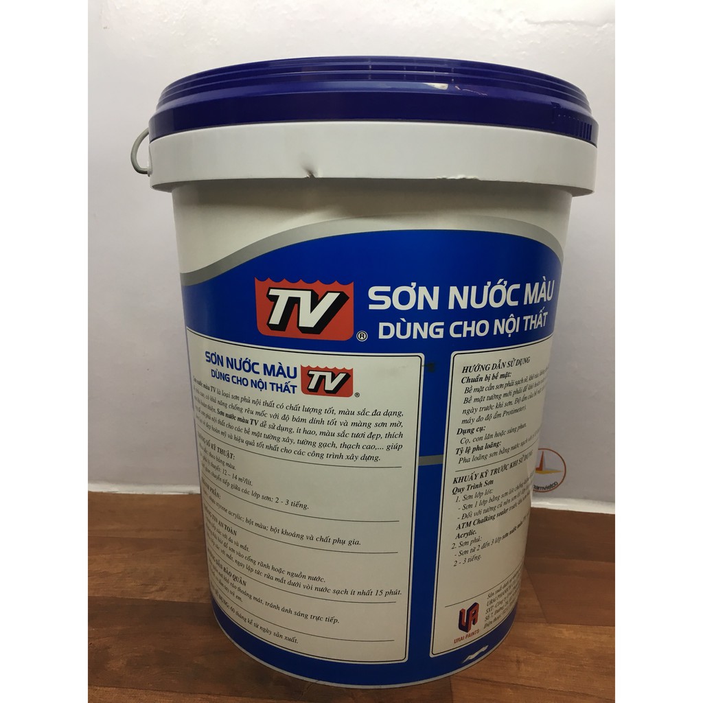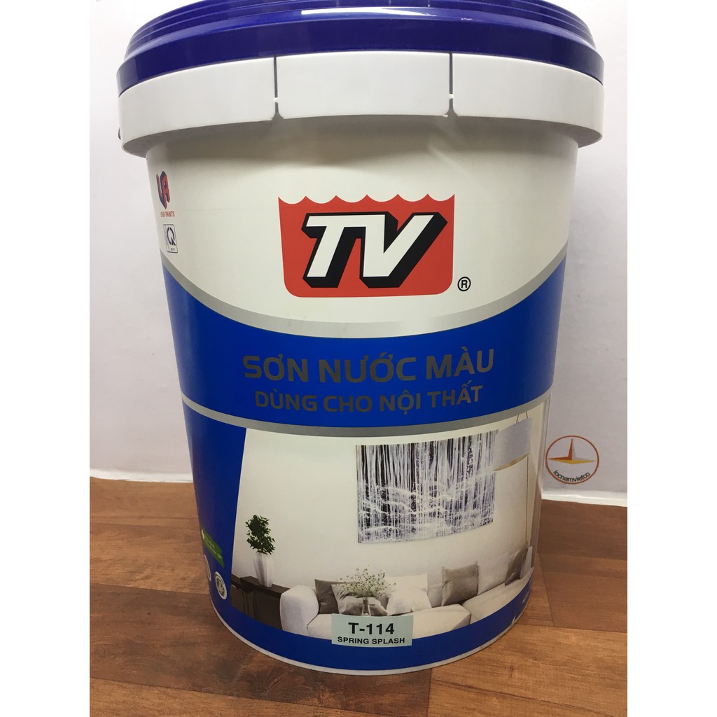 SƠN NƯỚC NỘI THẤT TV MÀU XANH T 114 17.5LSơn nước TV là loại Sơn phủ nội thất có chất lượng tốt, màu sắc đa dạng, độ phủ cao, có khả năng chống rêu mốc với độ bám dính tốt và màng sơn mờ, mịn khi hoàn thiện. Sơn nước TV dễ sử dụng, ít hao, màu sắc tươi đẹp, thích hợp để sơn phủ nội thất cho các bề mặt tường xây, tường gạch, thạch cao; giúp đem lại vẻ đẹp hoàn mỹ và hiệu quả tốt nhất cho các công trình xây dựng.