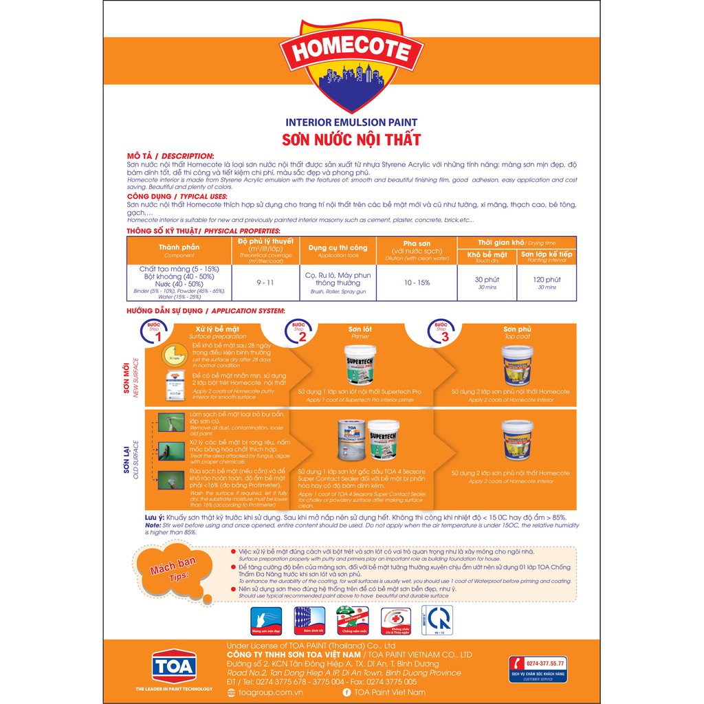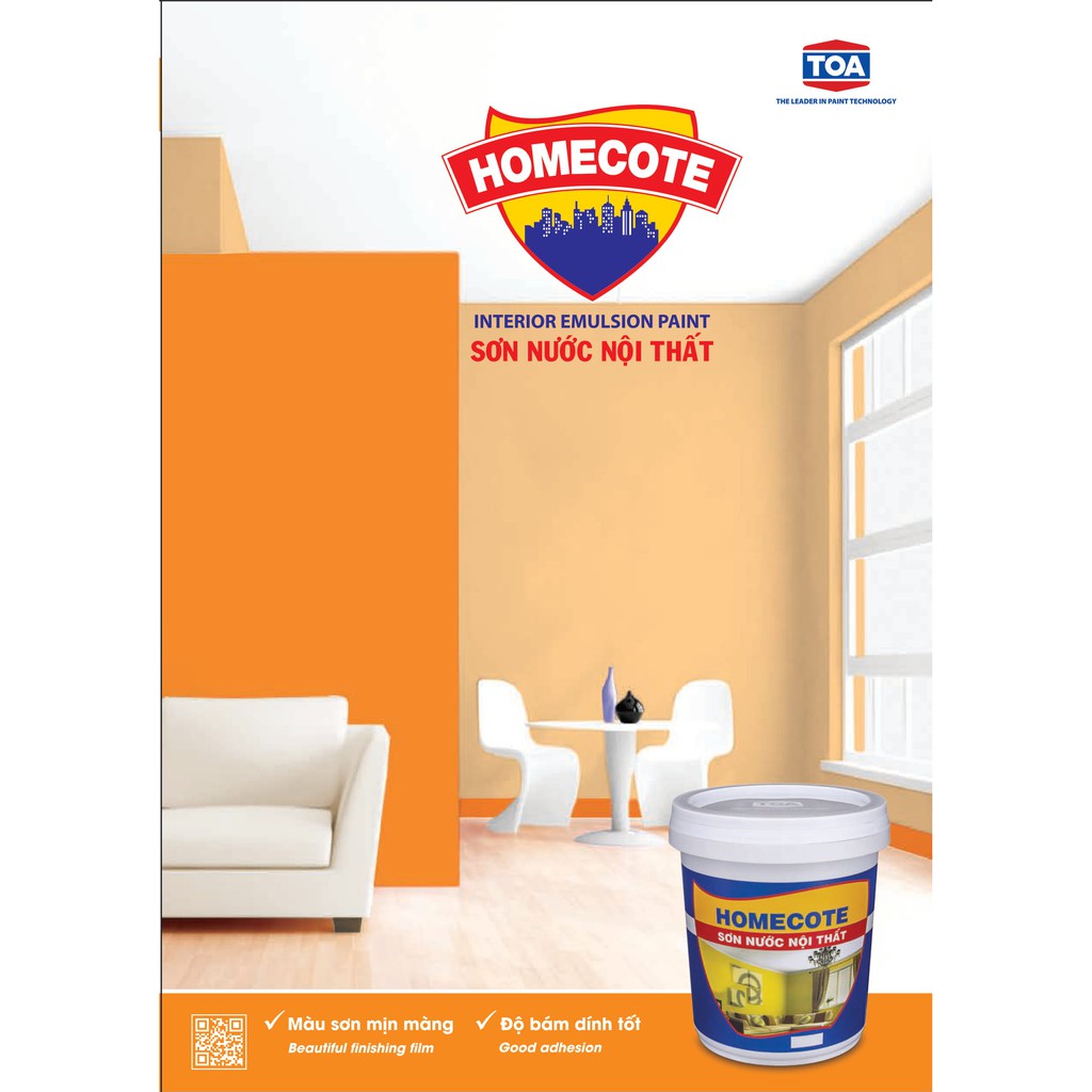 Sơn nước nội thất Homecote là loại sơn nước được sản xuất từ nhựa Styrene Acrylic với những tính năng: màng sơn mịn đẹp, độ bám dính tốt, dễ thi công. Màu sắc đẹp và phong phúMỤC ĐÍCH SỬ DỤNG: