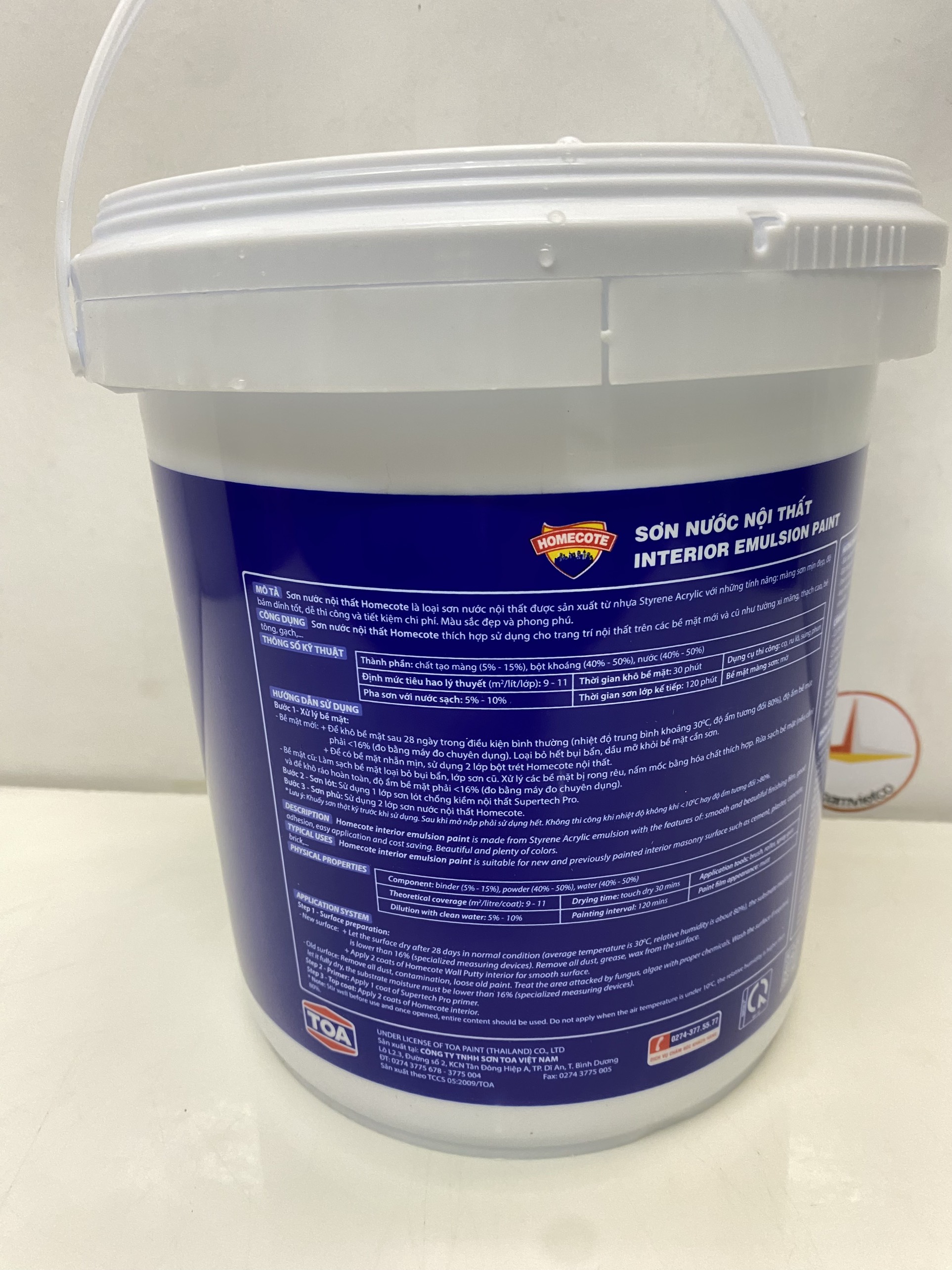 Sơn Nước Toa Homecote nội thất màu xám nhạt 8268_5LSơn Nước nội thất Toa Homecote là loại sơn nước được sản xuất từ nhựa Styren Acrylic với những tính năng: màng sơn mịn đẹp, độ bám dính tốt, dễ thi...- Giao hàng toàn quốc