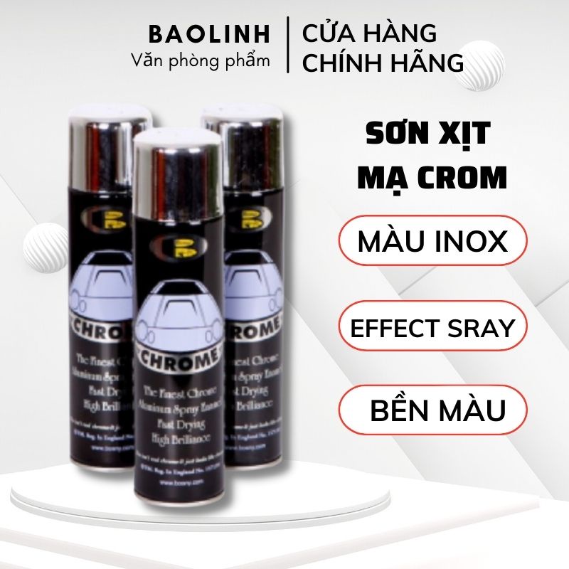 Giới thiệu Sơn Phun Mạ Crom Bosny - Sơn Xịt Màu Màu Crom Ánh Bạc, Vàng Gold Bám Màu Cao Hàng Chính Hãng - vanphongpham.baolinh