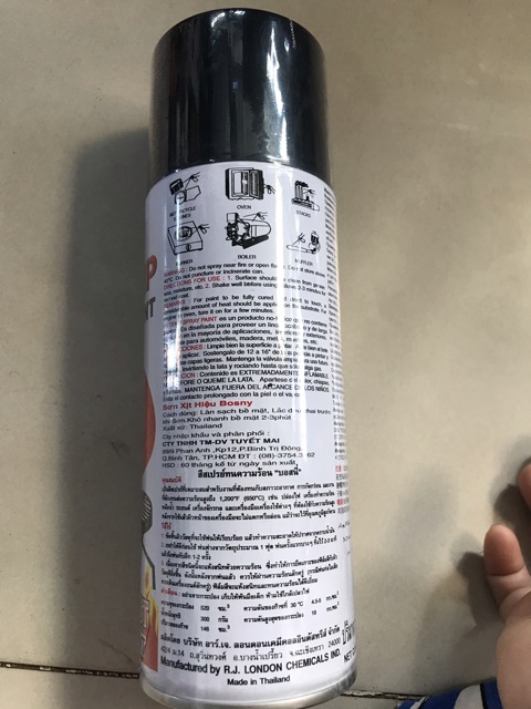 SƠN PHUN CHỊU NHIỆT CAO LÊN ĐẾN 1200 độ F, màu đen mờ phổ biến. Sơn dùng để phủ lên các vật dụng kim loại thường xuyên tiếp xúc với nhiệt độ cao như: bếp lửa, lò vì sóng, động cơ xe, ống khói...Giá TYPE