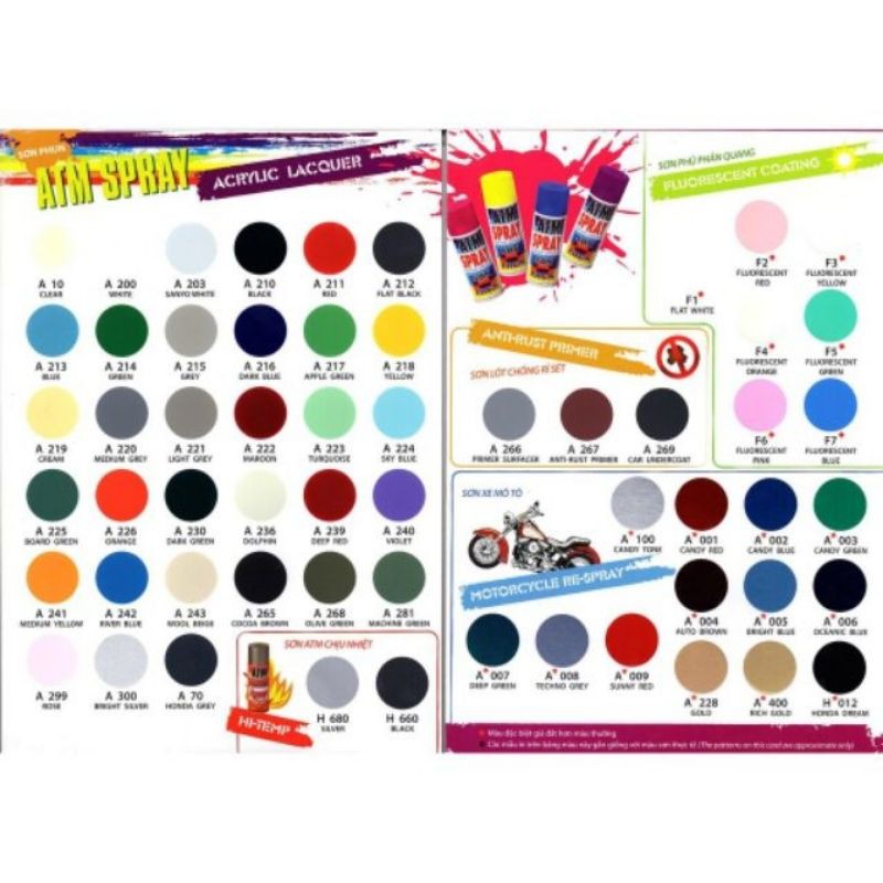 📌Nếu có màu nào không có trong bảng màu. Quý khách nhắn tin với shop nhéSƠN PHUN ACRYLIC ATM®