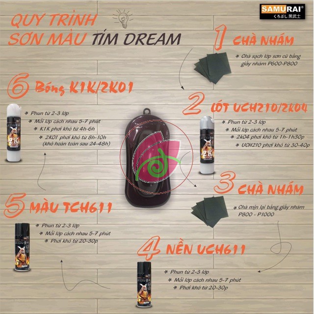 Ô tô > Dầu nhớt và phụ gia ô tô > Mỡ & Chất bôi trơn || Sơn Samurai Màu Tím Nho Dream - UCH611, TCH611Còn hàng