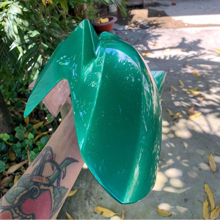 Giới thiệu Sơn Samurai màu xanh ngọc bích 1380 chính hãng, sơn xịt phủ dàn áo xe máy chịu nhiệt, chống nứt nẻ, kháng xăng
