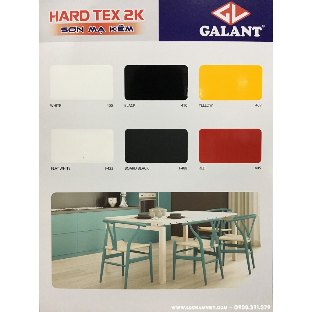 Sơn sắt mạ kẽm không cần lót Hard Tex 2k Galant màu vàng 409 -4kgSơn mạ kẽm Galant Hard Tex 2k Là loại sơn hai thành phần, khô nhanh, độ bám dính tốt, độ bóng cao, độ cứng lớp sơn phủ đạt tối đa với khả năng chống hóa chất và các điều kiện thời tiết rất tốt.
