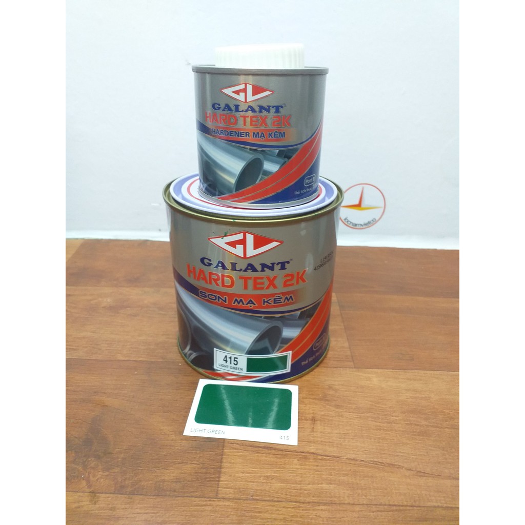 Sơn sắt kẽm 2 thành phần màu xanh lá hard tex 415Sơn Galant Hard Tex 2K Là loại sơn Epoxy hai thành phần, khô nhanh, độ bám dính tốt, không bong tróc, không bị nứt, độ bóng cao, độ cứng lớp sơn phủ đạt tối đa với khả năng chống hóa chất và các điều kiện thời tiết rất tốt.