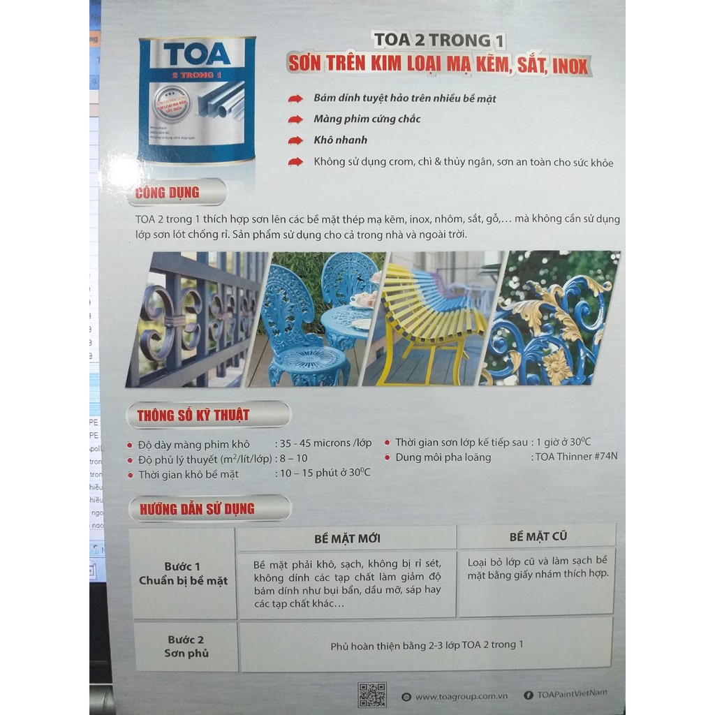 SƠN TOA 2 TRONG 1: SƠN LÊN KIM LOẠI MẠ KẼM, SẮT, INOXĐặc điểm: