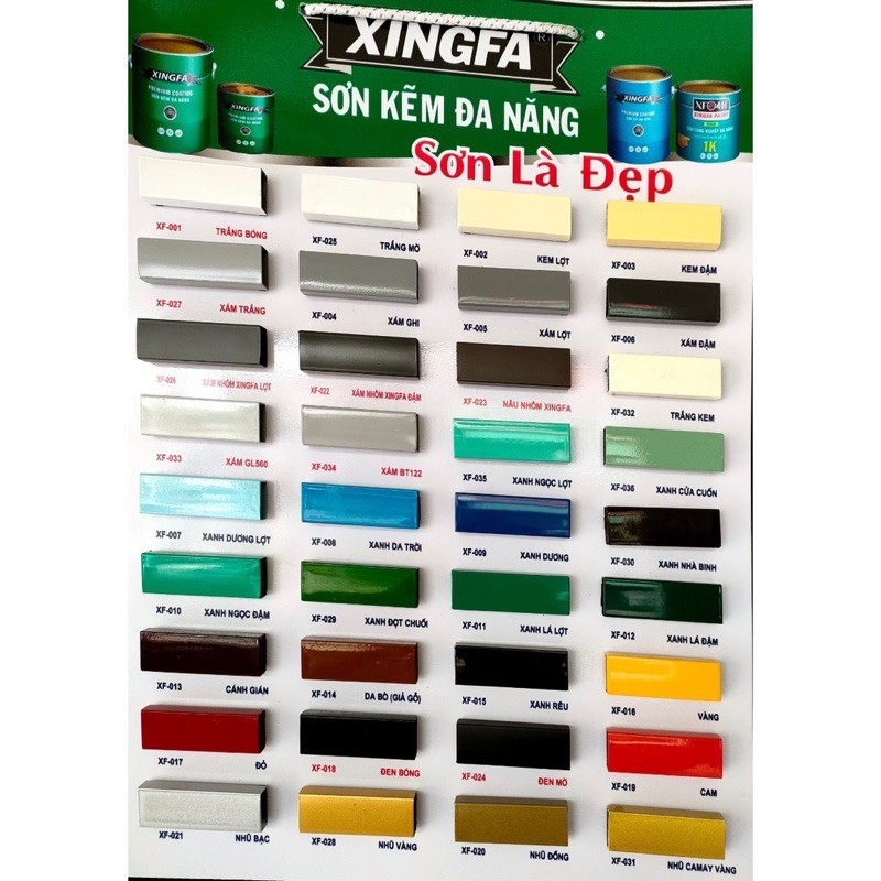 Sơn sắt mạ kẽm 1 thành phần Epoxy XINGFA Màu sắc: trên 30 màu ( kèm theo bảng màu khách hàng lựa chọn sau khi đặt hàng
