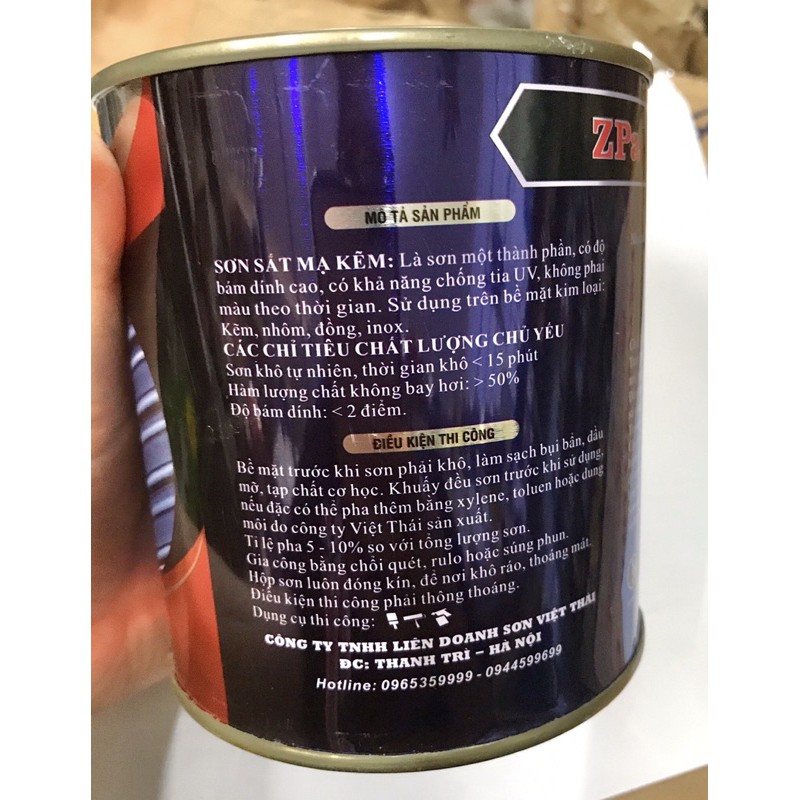 Nhà Cửa & Đời Sống > Dụng cụ & Thiết bị tiện ích > Sơn nhà cửa || SƠN SẮT MẠ KẼM ZPa công nghệ Đức lọ 800gram (tặng kèm chổi quét)Còn hàng