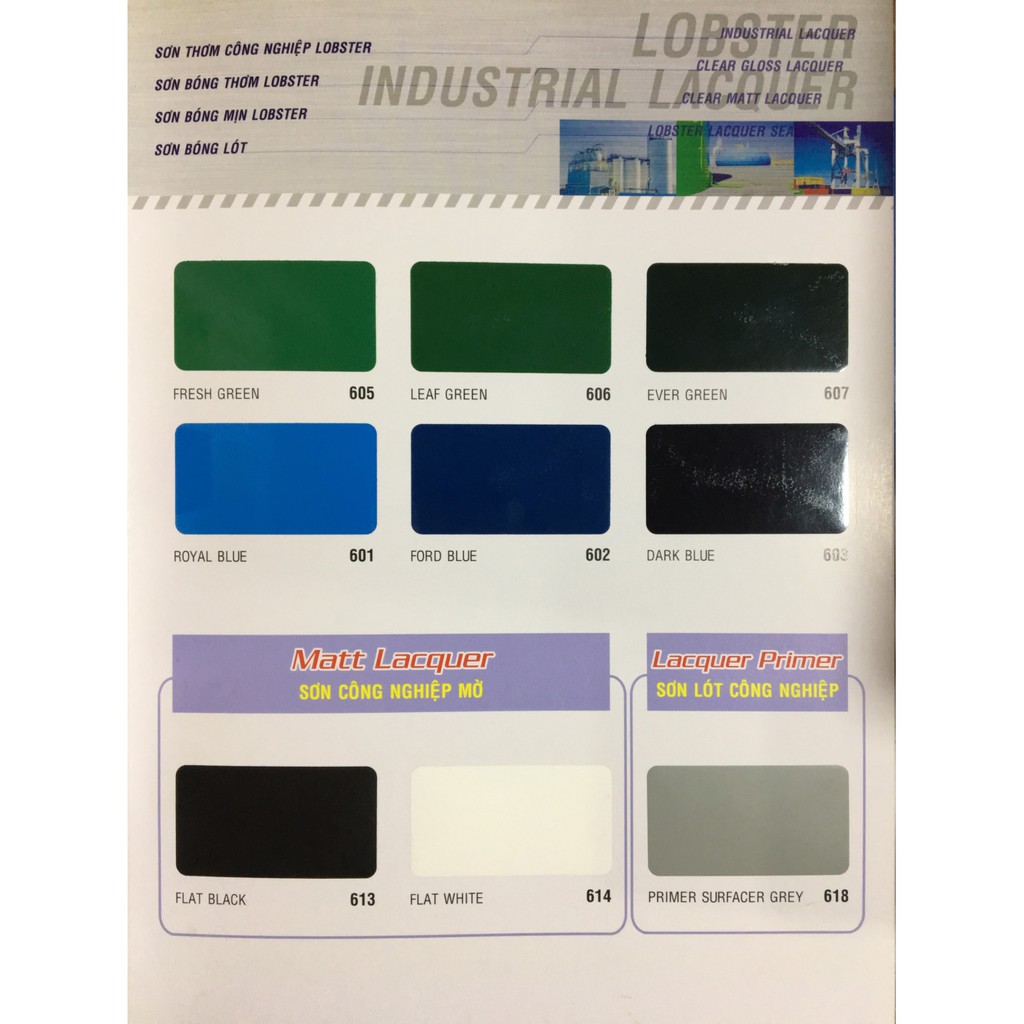 SƠN THƠM CÔNG NGHIỆP LOBSTER 613 là loại sơn công nghiệp khô nhanh, được sản xuất từ nhựa NC, nhựa Alkyd và bột màu cao cấp cho sản phẩm có độ bóng và độ bền cơ học cao, bền màu giúp bảo vệ tốt vật sử dụng. Sơn thơm công nghiêp LOBSTER dùng để sơn phủ bảo vệ và trang trí cho các bề mặt gỗ và kim loại như xe hơi, xe máy, máy công nghiệp và các vật dụng khác.Mã màu: Màu Trắng White 600, Vàng Chanh Lemon Yellow 620, Vermillion 612, Xám Sáng Light Grey 608, Vàng Đồng Yellow Oxide 610, Ruby 619, Xám Đậm Dark Grey 604, Vàng Yellow 609, Maroon 615, Đen Black 616, Reddish Orange 611, Silver Bronze 617, Fresh Green 605, Xanh Lá Leaf Green 606, Ever Green 607, Royal Blue 601, Ford Blue 602, Xanh Đen Dark Blue 603, Đen Mờ Flat Black 613, Trắng Mờ Flat White 614, Lót Xám Primer Surfacer Grey 618.