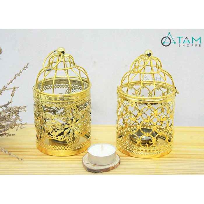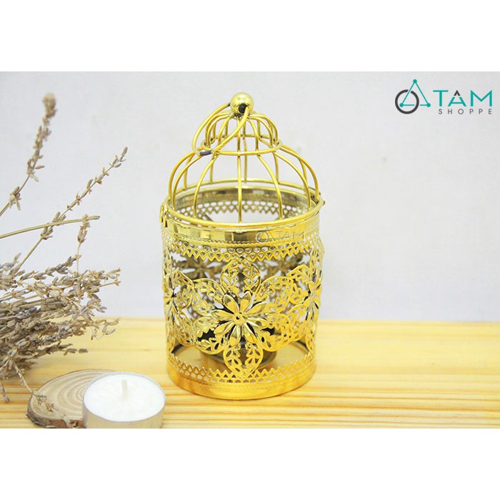 [SƠN TĨNH ĐIỆN] Chân nến lồng chim sắt cổ điển mini ánh kim vàng số 17
