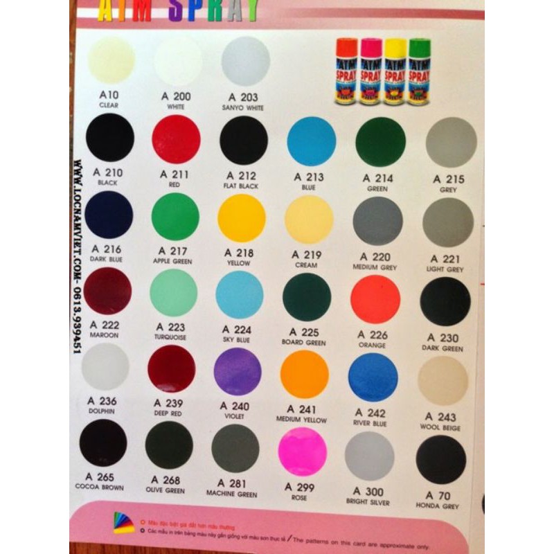 sơn xịt chính hãng của atmcó đủ màu cho bạn lựa chọn