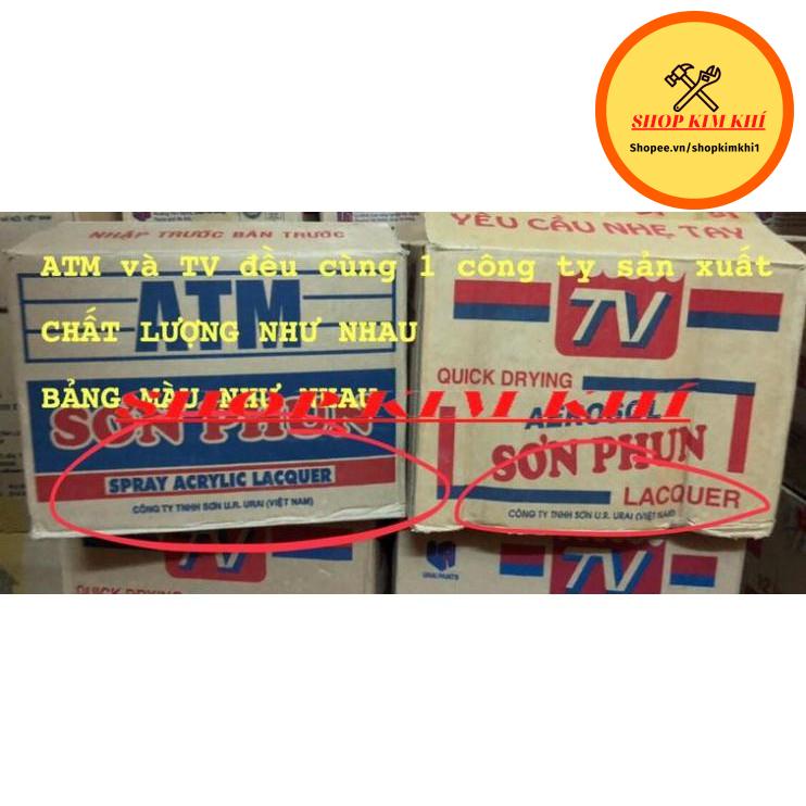Có 2 loại xịt ATM và TV. 2 loại này đều cùng 1 hãng sản xuất. Chỉ là 2 dòng tên sản phẩm thôi. Giá cả, bảng màu, mã màu và chất lượng như nhau nhé. Thậm chí xịt TV còn nhanh khô hơn chút so với xịt ATM. Nên mình sẽ đóng ngẫu nhiên nhé