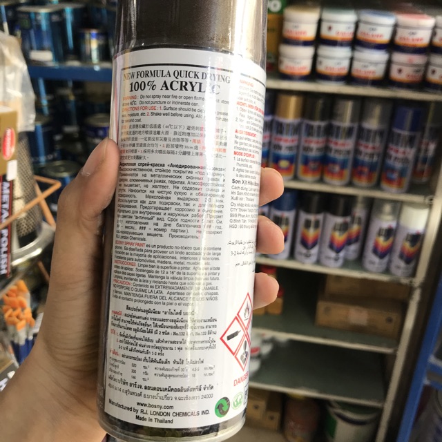 Sơn xịt Giả Cỗ( ANODIZED BRONZE) Bosny - Nhập khẩu Thái LanSơn xịt Giả Cỗ dùng xịt bề mặt các vật để có màu nâu cổ.