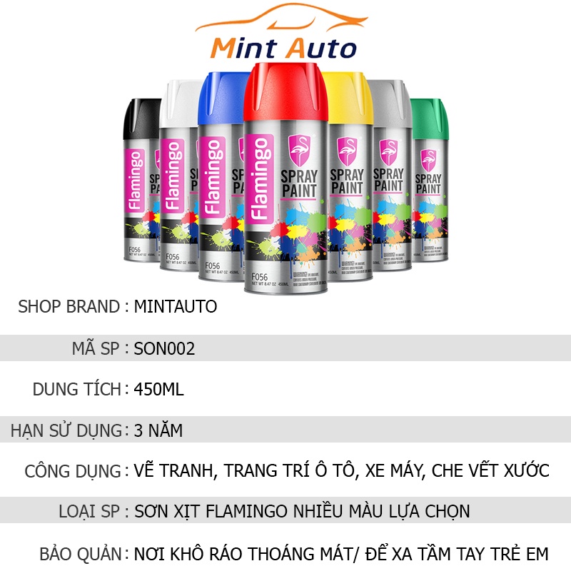 Sơn Xịt Cầm Tay Flamingo Nhiều Màu Sơn Ô Tô Xe Máy Tiện Lợi Dung Tích 450ml – MINTAUTO