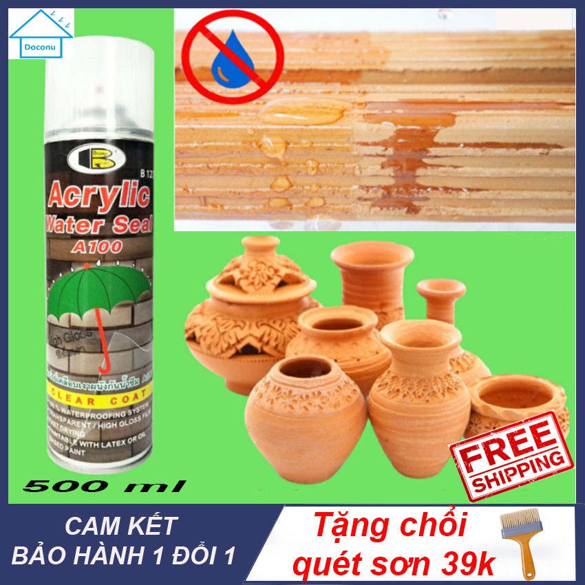 Sơn xịt chống thấm gạch, gỗ, đá, thạch cao, bê tông, nhựa Acrylic water seal DOCONU 500ml. [CAM KẾT BẢO HÀNH 1 ĐỔI 1]