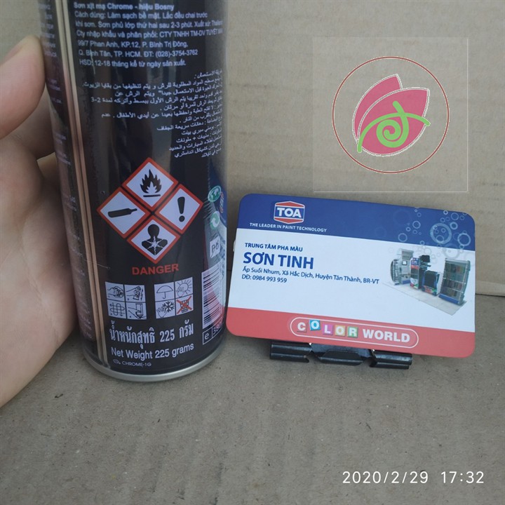 sơn xịt chrome mạ crom xuất xứ từ Thái Lan do Nhà cung cấp – Sơn mạ vàng phân phối toàn quốc. Sơn hiệu ứng màu sơn xịt chrome mạ cromcao cấp, tinh tế và nổi bật. Lớp sơn mịn, màng sơn khô nhanh, độ bám trên mọi bề mặt thích hợp đồ nội thất, đồ gia dụng, xe oto, xe máy,… Sản phẩm sau khi sơn nổi bật, độc đáo và thu hút hơnsơn xịt chrome mạ crom có thiết kế nhỏ gọn 225g. Được sản xuất từ 100% Acrylic tinh khiết chất lượng cao. Thành phần sơn không chứa chất độc hại, an toàn cho người sử dụng.