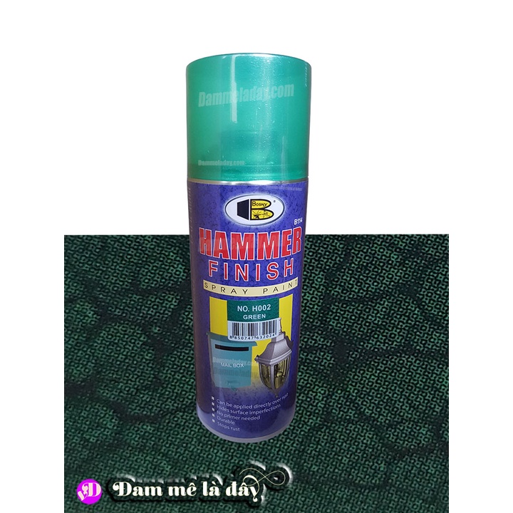 Sơn xịt hoa văn hammer finish Bosny– Nhập khẩu Thái Lan.Kết cấu màu sơn độc đáo sẽ tạo nên hoa văn trên bề mặt sản phẩm, đồng thời với màng sơn cứng và độ bền cao giúp ngăn ngừa ăn mòn và chống rỉ sét.
